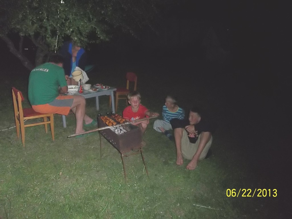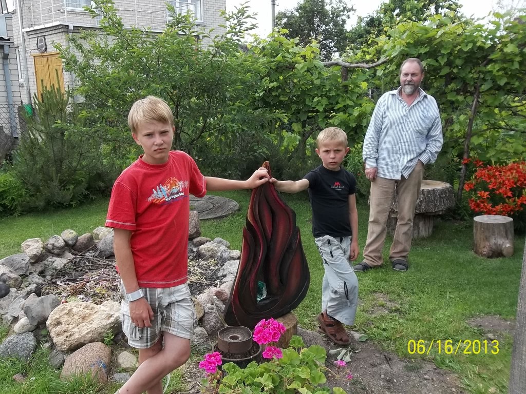 Svečiavomės pas mano draugą. Jo tėtis mums parodė savo miestelį. Matėme gražiai sutvarkytų kiemų. Paskui susipažinome su tėtės draugu skulptoriumi Aleksandru Tarabilda. Jis mus privaišino ledais. Kitas tėtės draugas davė pasivažinėti žolės pjovimo traktoriuku. Buvo labai įdomu.